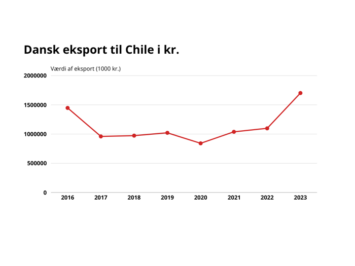 Den samlede danske vareeksport til Chile udgjorde i 2023 DKK 1,7 milliarder.