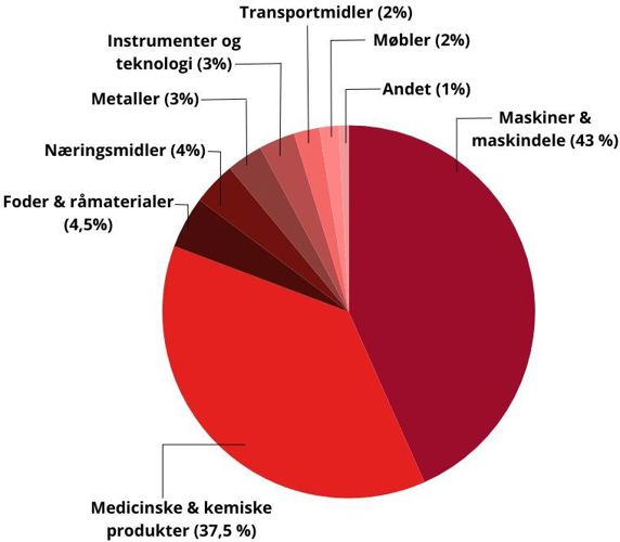 Den danske vareeksport til Chile er koncentreret omkring forholdsvis få produktgrupper, hvor ca. 43 % af den danske eksport til Chile består af maskiner og -tilbehør til forskellige industrier. Medicinske og farmaceutiske produkter udgør 37%. De resterende 40 % består hovedsageligt af produktgrupper som, kemiske materialer, organiske kemikalier, tekniske og videnskabelige instrumenter, diverse forarbejdede varer, samt metalvarer.