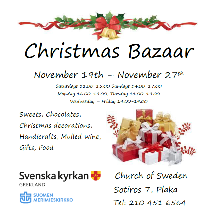 Der er julebasar i den Skandinaviske Kirke i Athen i dagene 19.-27. november.
