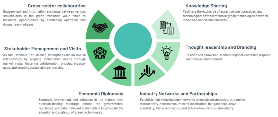 The Green Transition Alliance India (GTAI), formed in 2025, is a strategic platform designed to position Danish companies at the forefront of India’s green energy transition. Anchored in the Green Strategic Partnership (GSP) between India and Denmark and aligned with the Indo-Danish Energy Partnership (INDEP), GTAI brings together Danish players across the green energy value chain to advance scalable, sustainable solutions in one of the world’s fastest-growing energy markets.