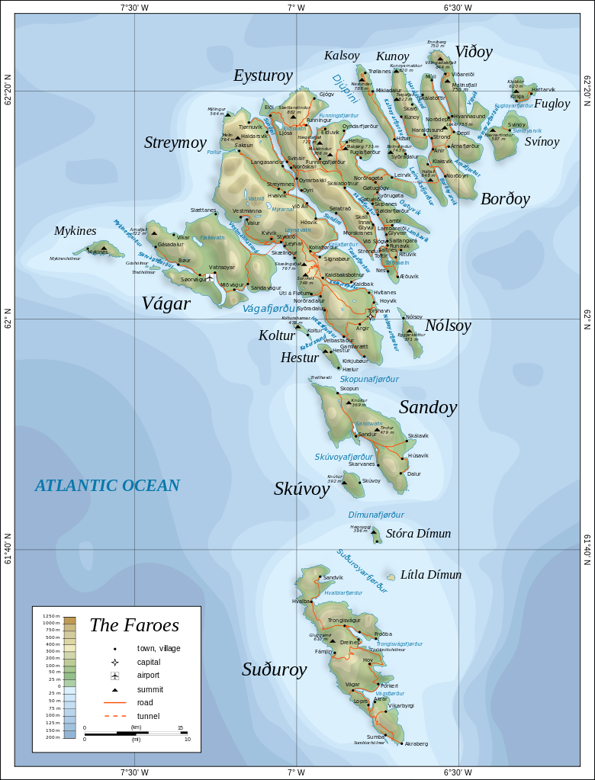 - The islands are divided into six regions, known as sýslur. These are: Norðoyar, Eysturoy, Streymoy, Vágar, Sandoy and Suðuroy.