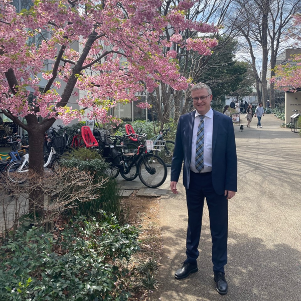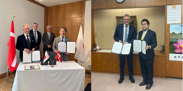 Being in town for only two days, Minister Jacob Jensen had a packed schedule. Other than witnessing the blossoming trees in Tokyo, part of the agenda for Monday was the signing of a commercial contract between the company Cornes AG and Danish manufacturer One2Feed. One2Feed is a small Danish manufacturer of automated feed robots for dairy farms, and Japanese company Cornes AG is representing One2Feed in the Japanese market. The same day, the minister signed a Memorandum of Cooperation which supports the bilateral cooperation between Denmark and Japan in the area of green transition.