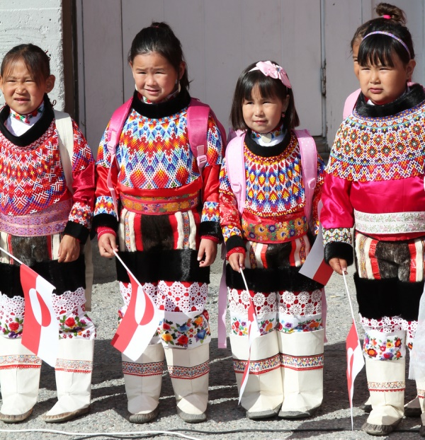 伝統的なアノラックとカミックを着たグリーンランドの少女。 写真: Julia Ridlington