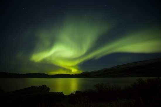 この現象はオーロラと呼ばれています。高度の大気中で荷電粒子と原子が衝突して生じ、衝突によりって空には大気の組成を映し出す力強い色が表れます。グリーンランドは夜空に踊るこの光のショーを体験できる、世界でも数少ない場所の一つです。