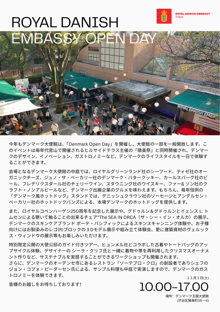 デンマーク大使館:「Denmark Open Day 2025(デンマーク・オープン・デー2025)」
