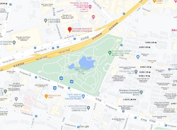 The map below indicates the location of the Danish Consulate General in Shanghai