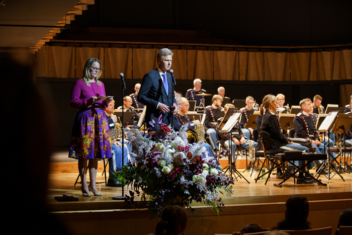 Ambassadør Flemming Stender bød velkommen til koncerten og henviste i sin tale til, at den Kongelige Livgardes Musikkorps var inviteret, fordi rigtig mange danske soldater i øjeblikket er udstationeret i Letland.