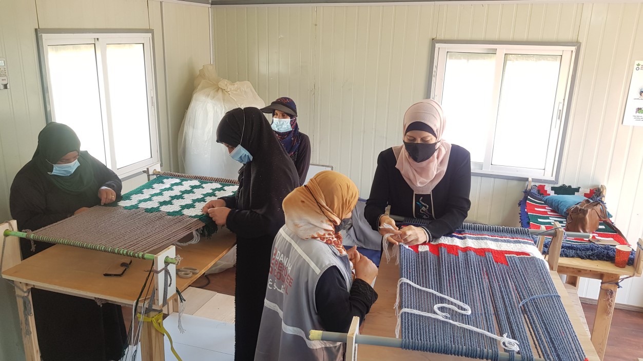 Teaching carpet production at the Danish Refugee Council in Azraq refugee camp, Jordan. Photo: Danish Refugee Council