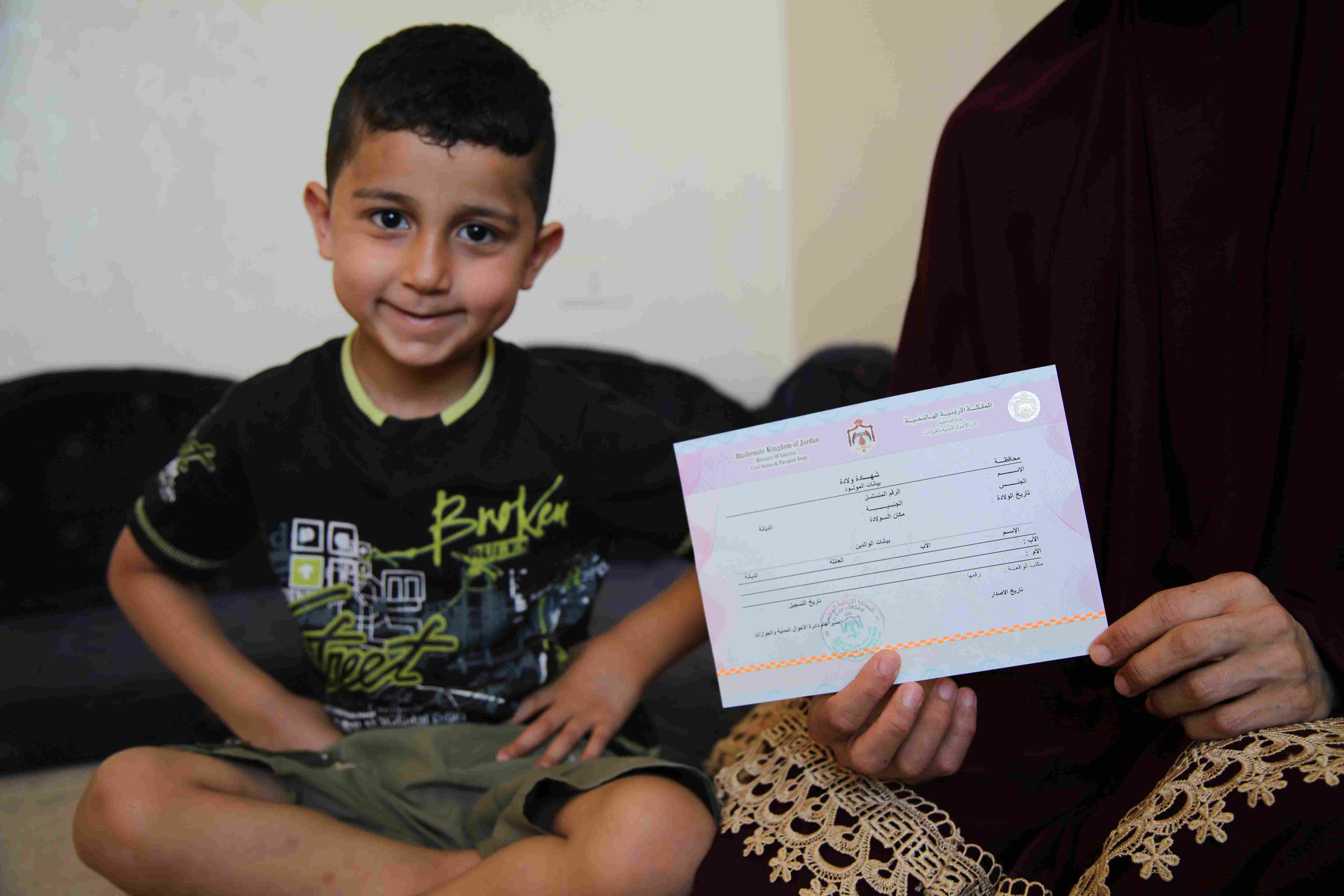 With support from the Norwegian Refugee Council, Rajaa has succeeded in obtaining a birth certificate for her son. Photo: Shatha Abu Hanna, NRC