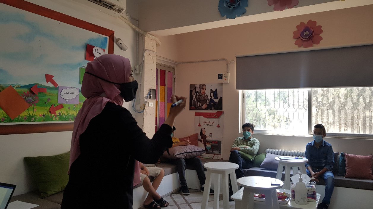 Sess Session in psychosocial support at the Danish Refugee Council's activity center in Irbid, Jordan. Photo: Danish Refugee Council
