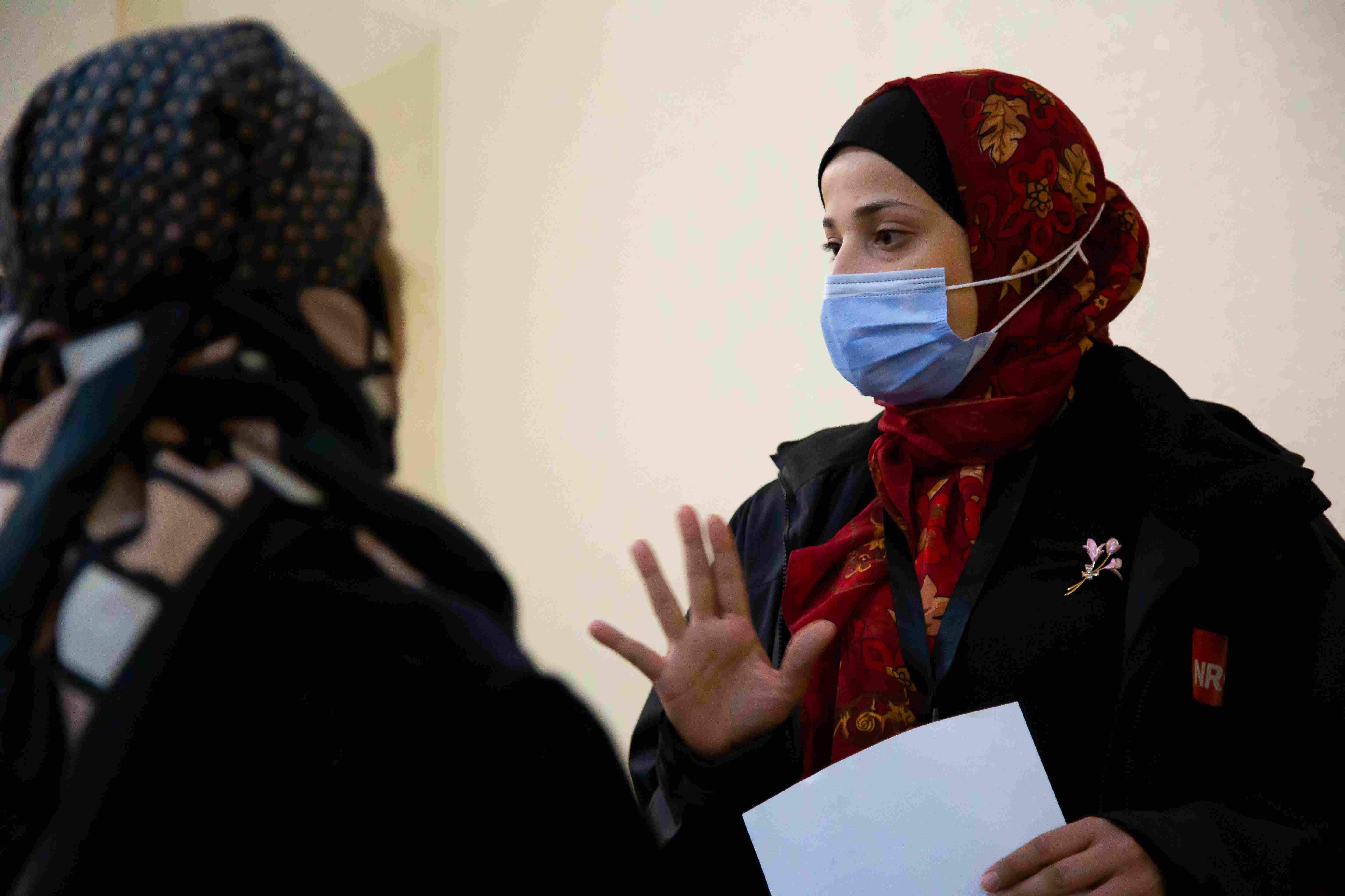 An employee of the Norwegian Refugee Council in Jordan, who gives a lesson in information guidance and legal assistance. Photo: Tina Abu Hanna, NRC