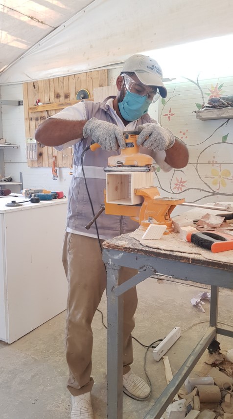 Workshop in carpentry at the Danish Refugee Council in Azraq refugee camp, Jordan. Photo: Danish Refugee Council