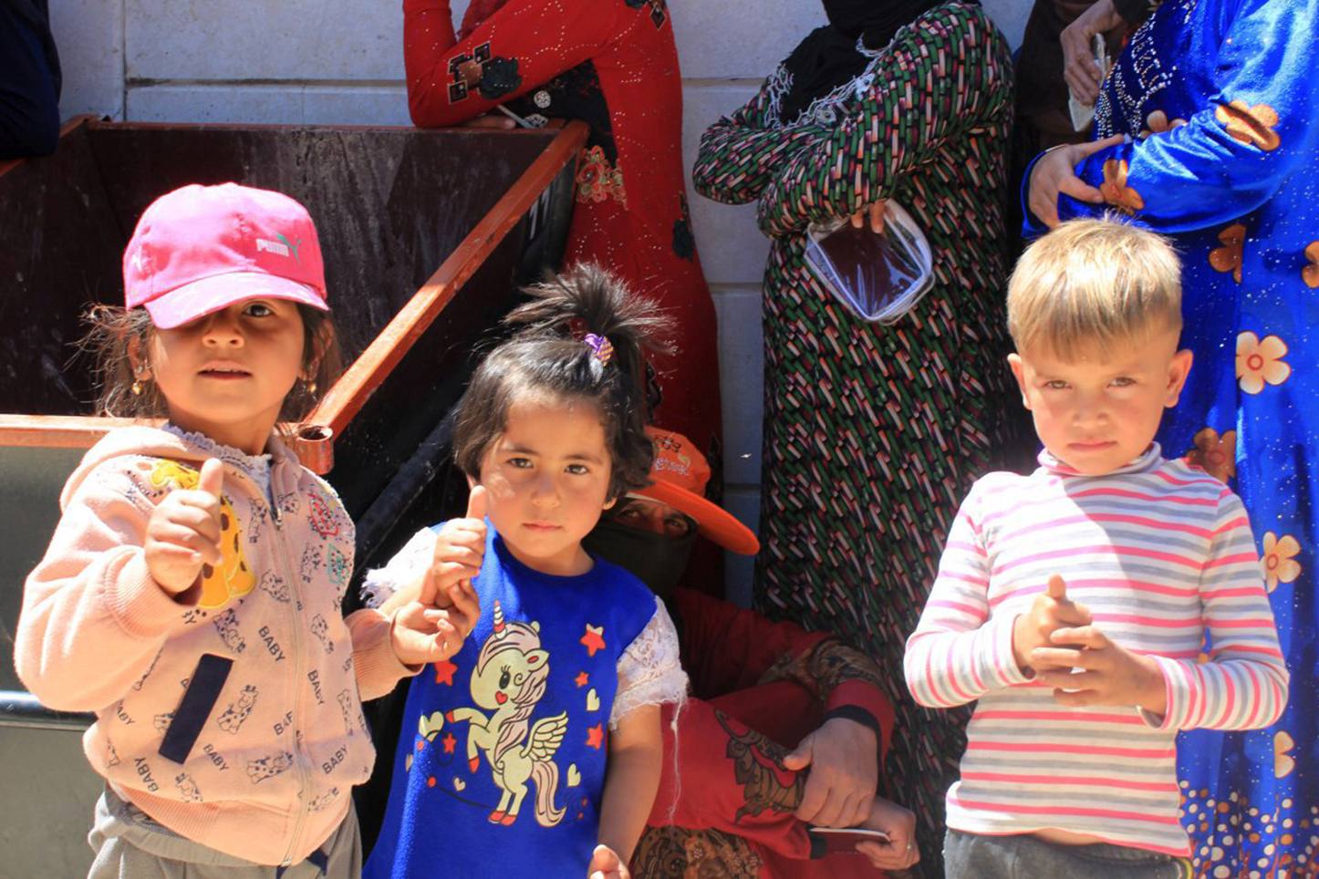 Børn ved udleveringssted af nødhjælpsartikler i Syrien. Foto: Mission Øst