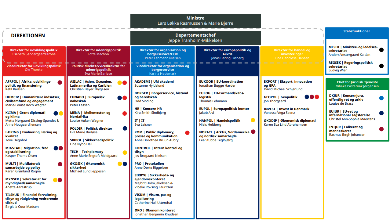 Organigrammet beskriver Udenrigsministeriets organisation i København.