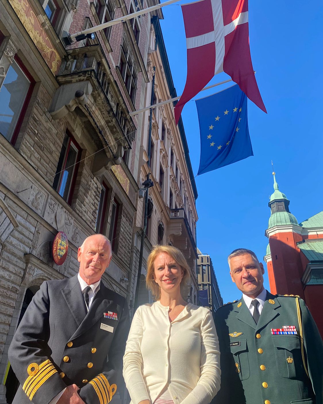 På billedet ses fra højre Ambassadens Forsvarsattaché Carsten Hasenfuss, Ambassadør Kristina Miskowiak Beckvard og gæst på dagen Kommandørkaptajn i søværnet Ken Bille Nielsen.