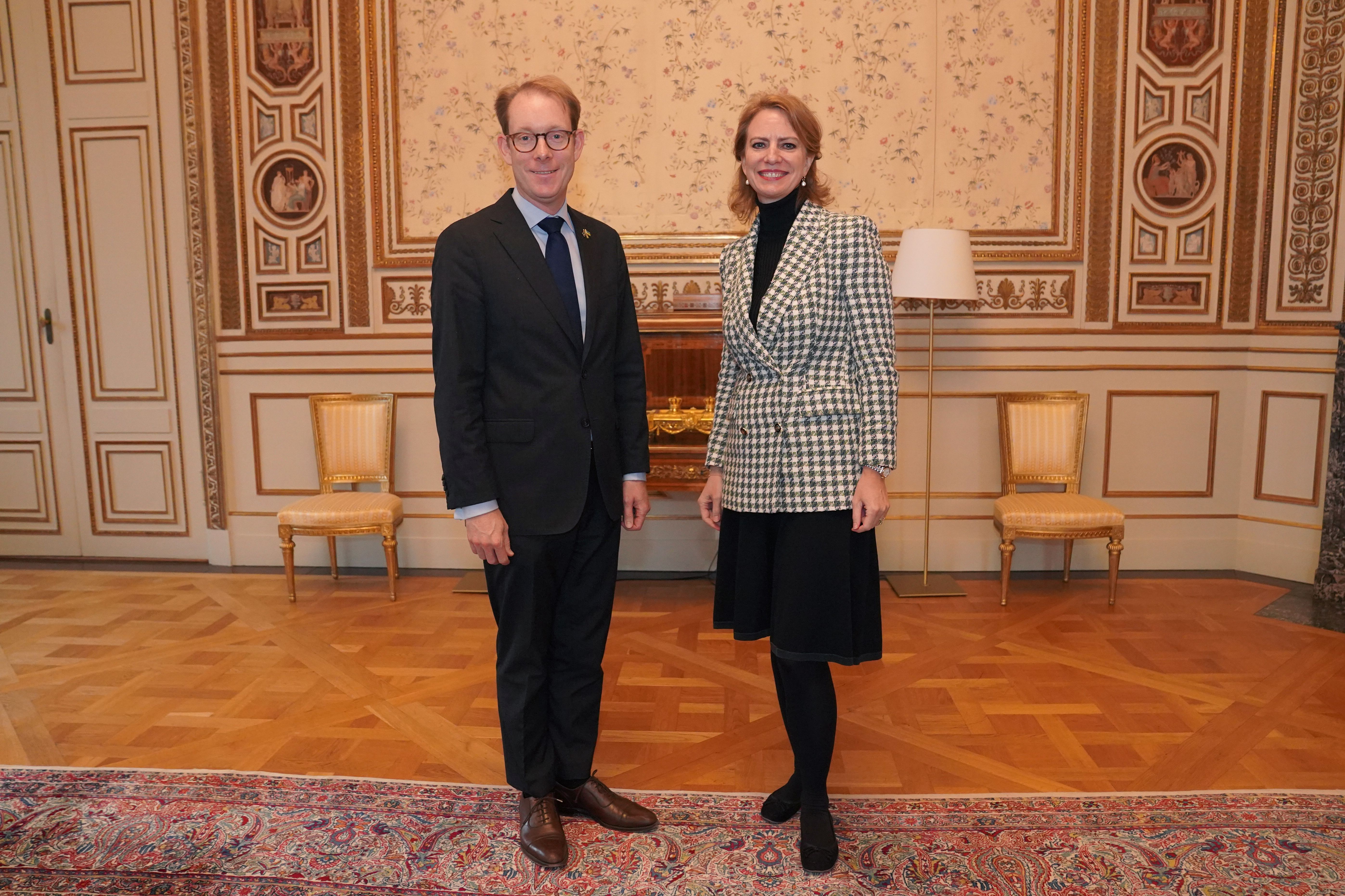 Fredag den 11. november 2022 var ambassadør Kristina Miskowiak Beckvard inviteret til høflighedsvisit hos den svenske udenrigsminister Tobias Billström. Tobias Billström kommer fra Skåne. Han indledte samtalen på flydende dansk, hvorefter der blev drøftet dansk-svenske værdier, interesser og samarbejde.