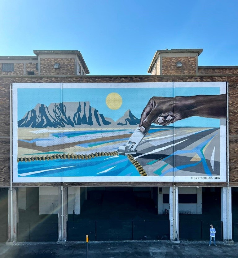 In 2022, the UN’s World Water Day focused on groundwater: ‘Making the invisible visible’. To help make Cape Town’s invisible groundwater more valued, a collaborative mural concept was born. The aim of this public art project is to raise awareness about climate change and water scarcity. The chosen themes are aligned with the Danish Ministry of Foreign Affair’s priorities and Embassy of Denmark’s technical programmes and collaborations with national and local government in South Africa. As such the murals will be a testament to the Danish contributions in the City of Cape Town and South Africa. The Danish Embassy is also part of the Table Mountain Water Source Partnership, a multistakeholder collaborative platform which focuses on Cape Town’s crucial aquifers and their groundwater supply to ensure sustainable management and use.