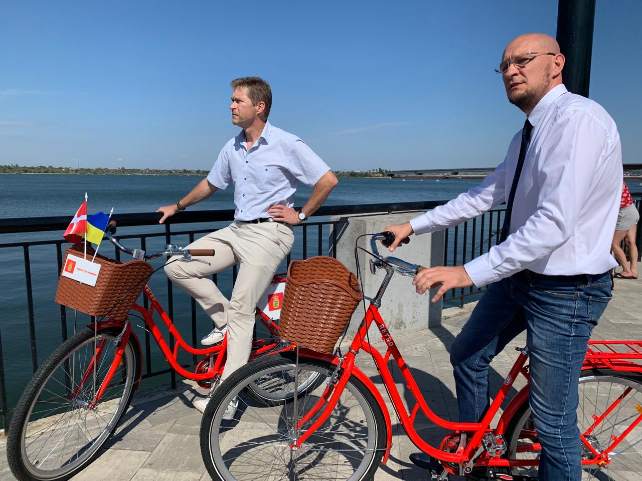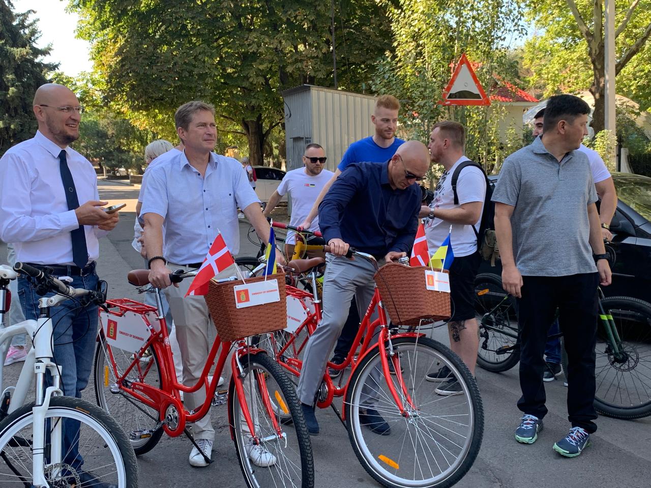 The embassy team also joined the municipal and regional leadership in a bike ride through the city streets, celebrating under Ukrainian and Danish flags.