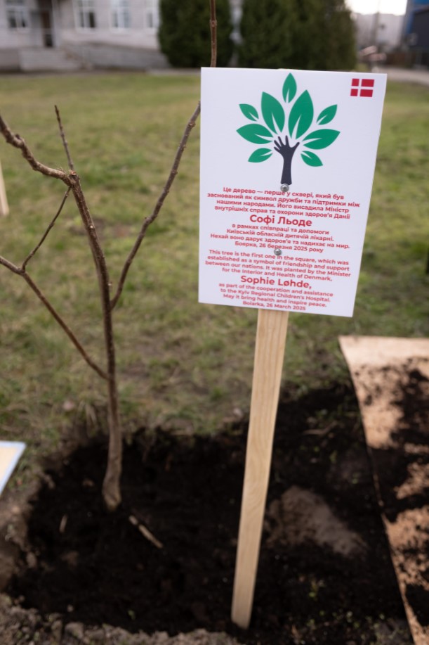 At the Kyiv Regional Children’s Hospital in Boyarka, the delegation met with Ukrainian doctors who had participated in a Danish-Ukrainian peer exchange program. They toured the hospital’s neonatology and new oncohematology and departments. In a heartfelt gesture, the Ukrainian doctors initiated the planting of a Danish-Ukrainian Friendship Park, with the Danish Minister planting the first tree.