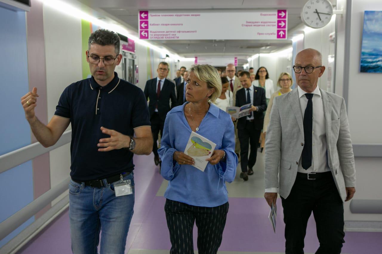 The delegation also visited the Okhmatdyt Children’s Hospital in Kyiv that had been severely damaged by the Russian missile attack on July 8th.