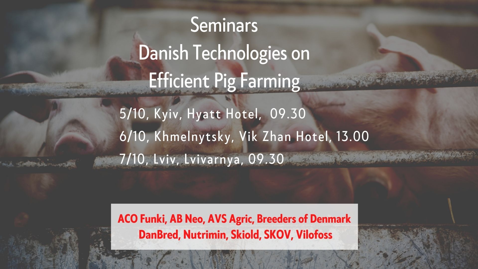 We encourage you to select the convenient destination and take part in the seminars on innovative solutions that allow Denmark to have the highest productivity in pig production in the world.