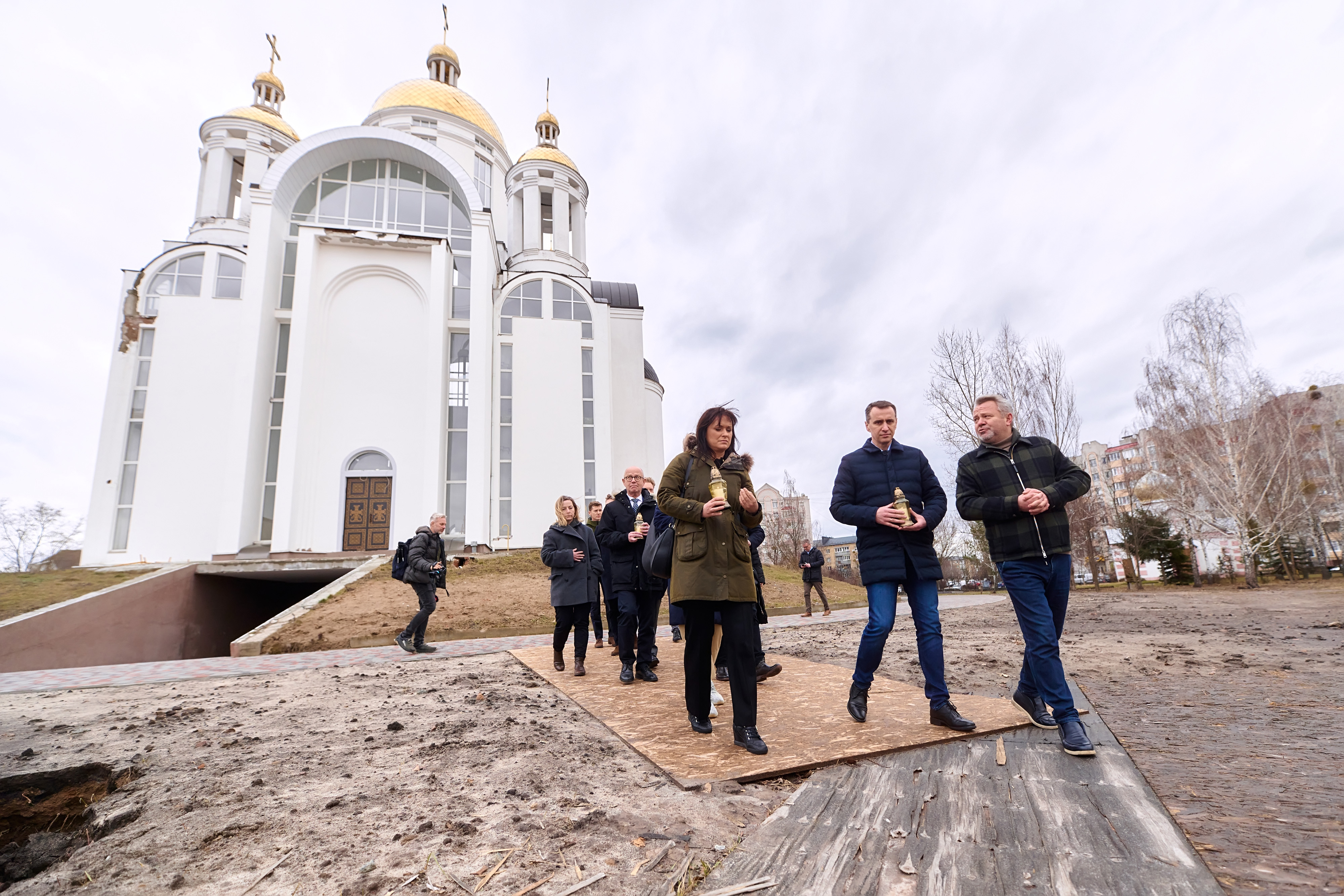 • paid a visit to Bucha; mayor Anatoliy Fedoruk and Father Andriy shared memories about the Russian occupation; the delegation laid flowers at the memorial to the victims of Russian aggression