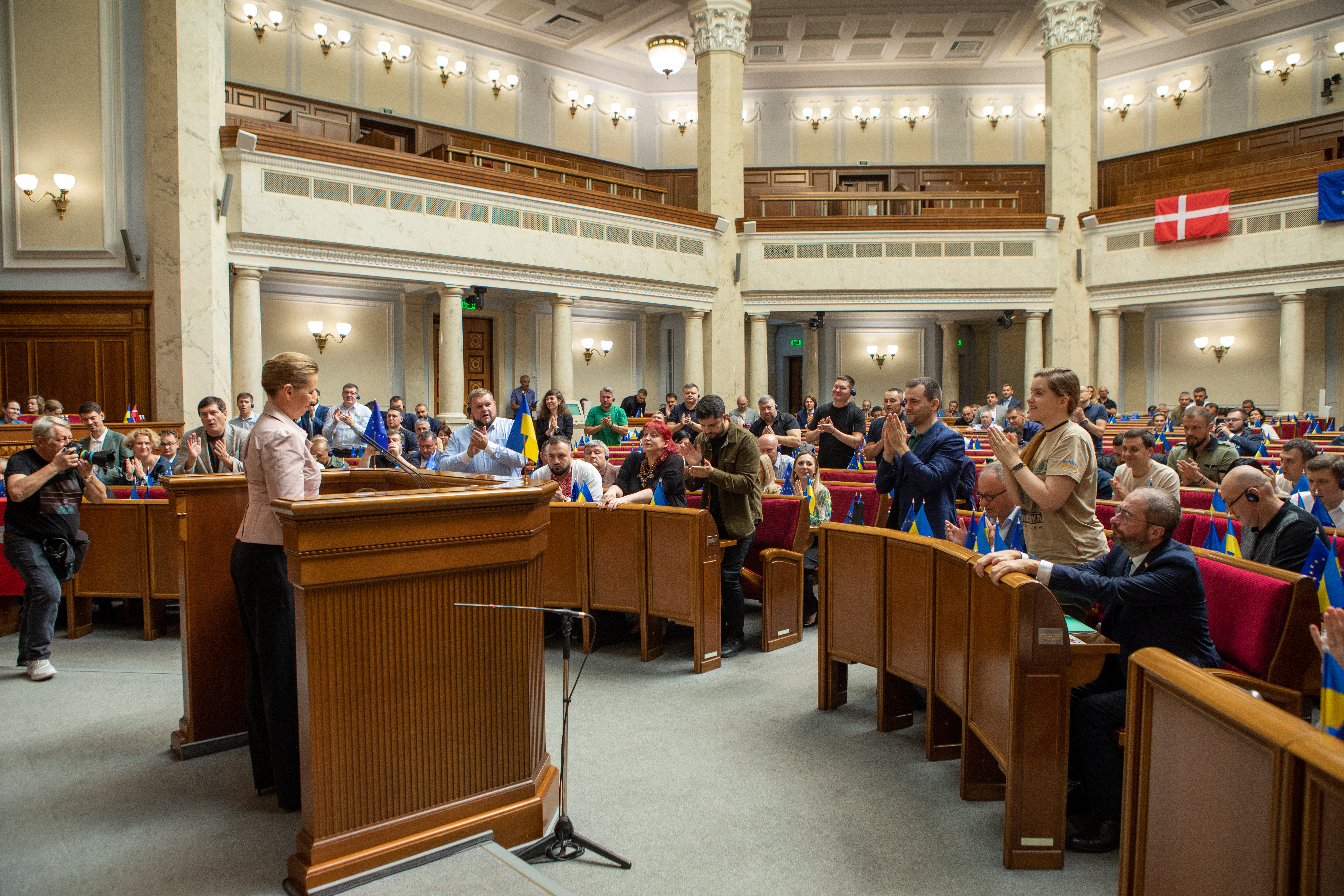 During her speech to the Rada which was met by booming applause, the PM reassured that Ukraine’s fight is also Denmark’s and Europe’s fight.
