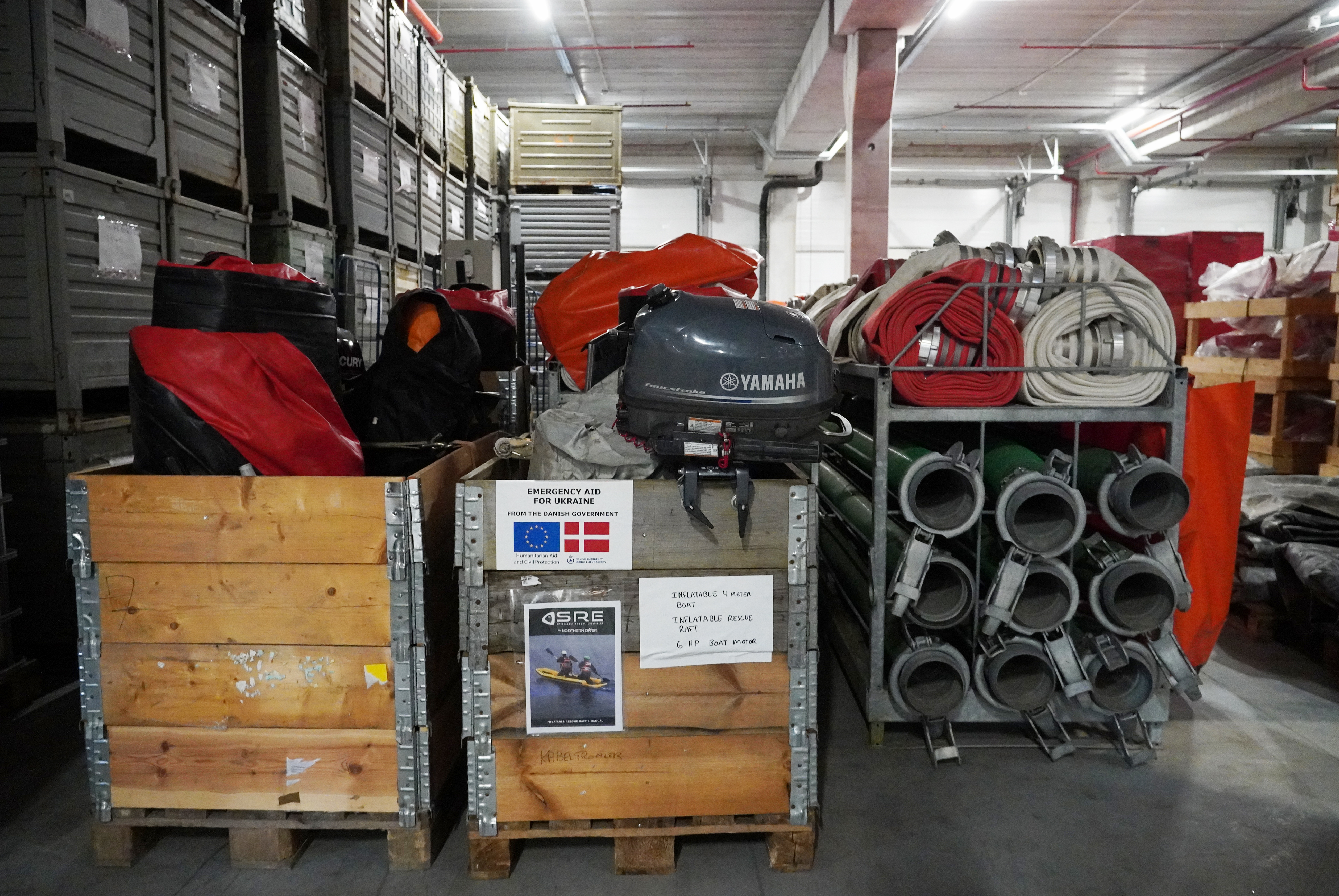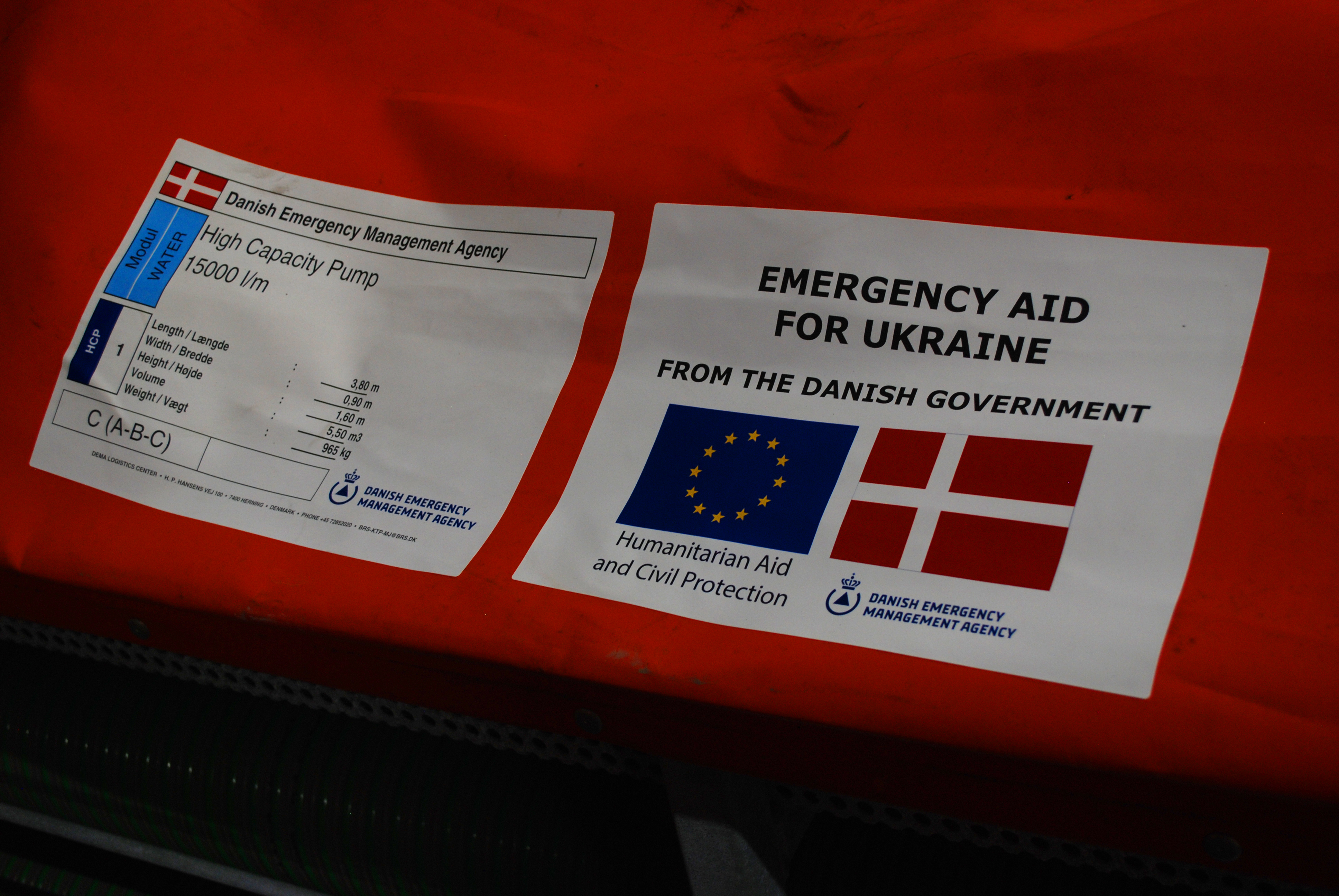 The package includes pumps, tents for accommodation, rescue boats and a high-capacity generator. This equipment from the Danish Emergency Management Agency travelled from Denmark’s international logistics center in Herning directly to Lviv from where it will be deployed to the flooded areas.