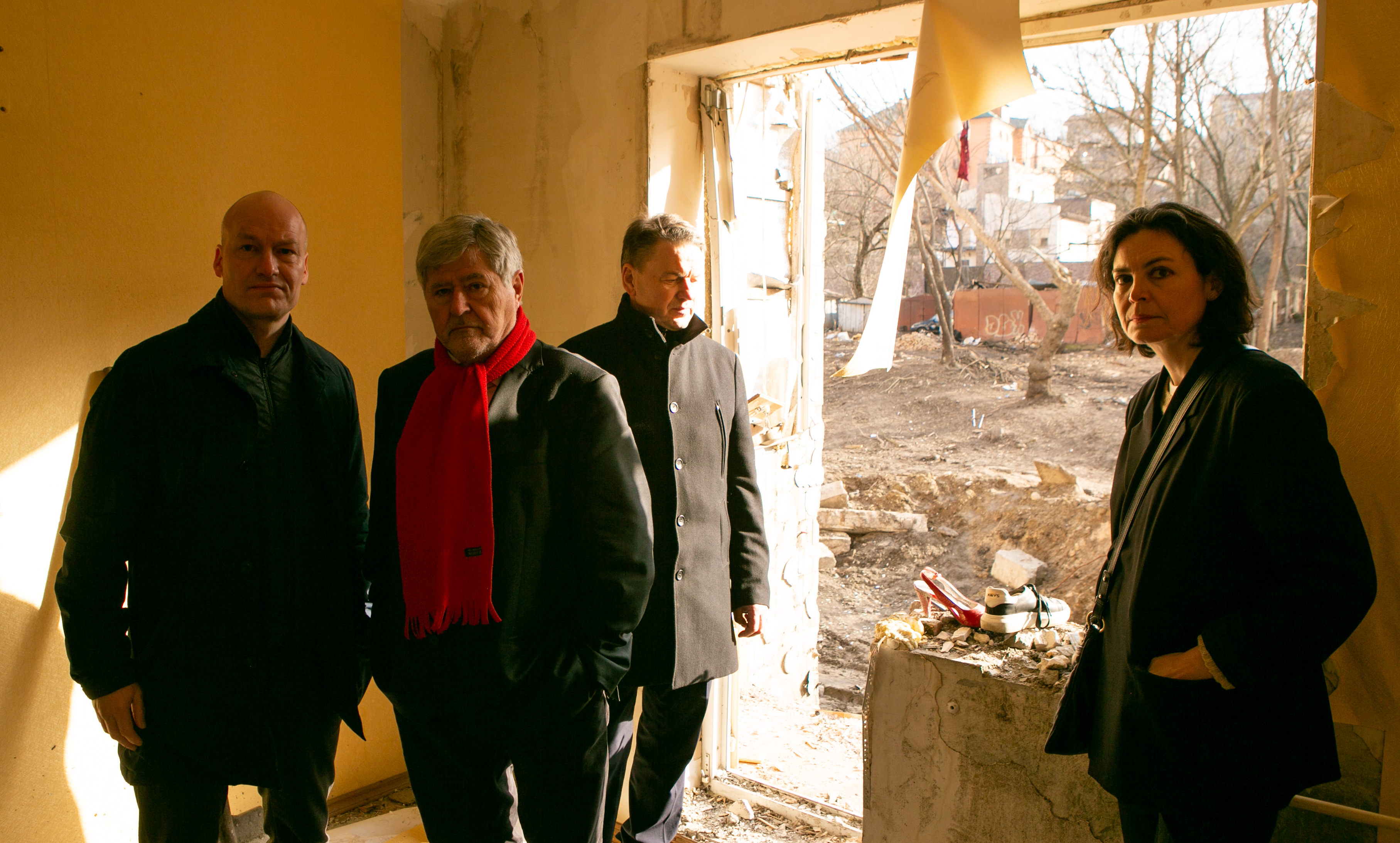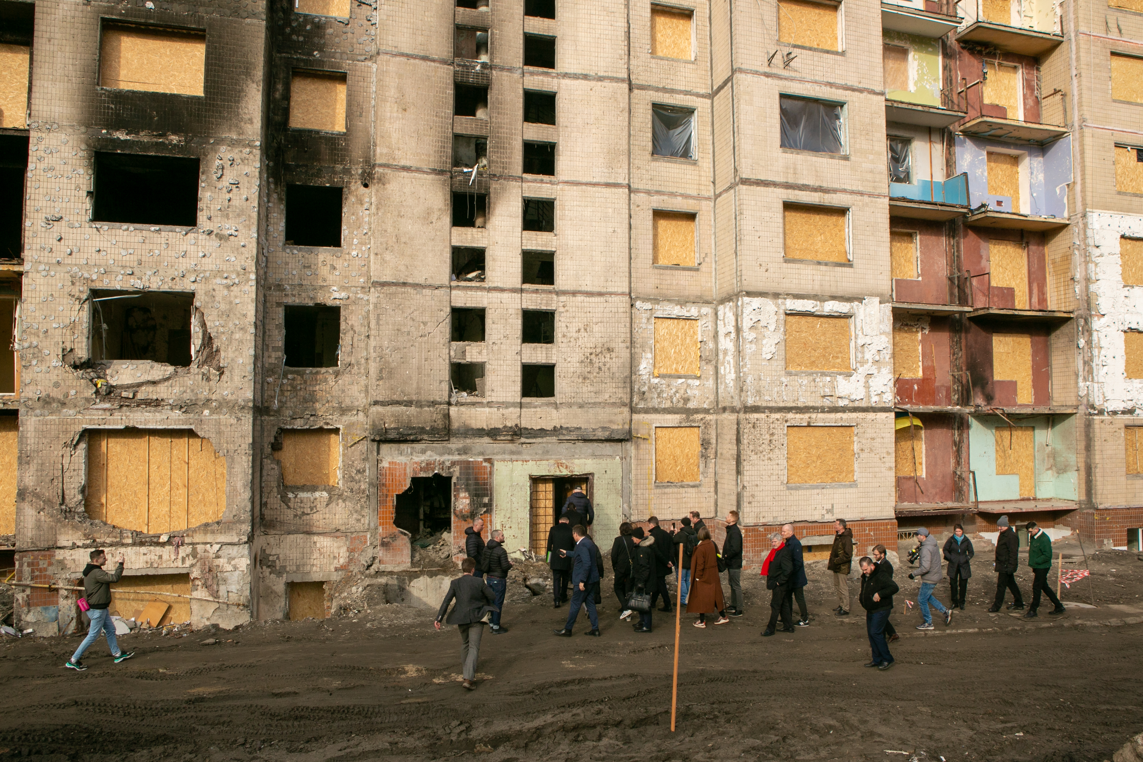 Місто Київ також було в центрі уваги. Делегація виїхала до житлового будинку в Солом’янському районі, який постраждав унаслідок російського ракетного обстрілу 2 січня. Депутати заходили всередину будинка, щоб якомога ближче побачити руйнівні наслідки обстрілу. Заступник мера В’ячеслав Непоп та голова Солом’янської районної ради Ірина Чечотка розповіли про ту роботу, яку після обстрілу Київська міська державна адміністрація провела разом з партнерами.