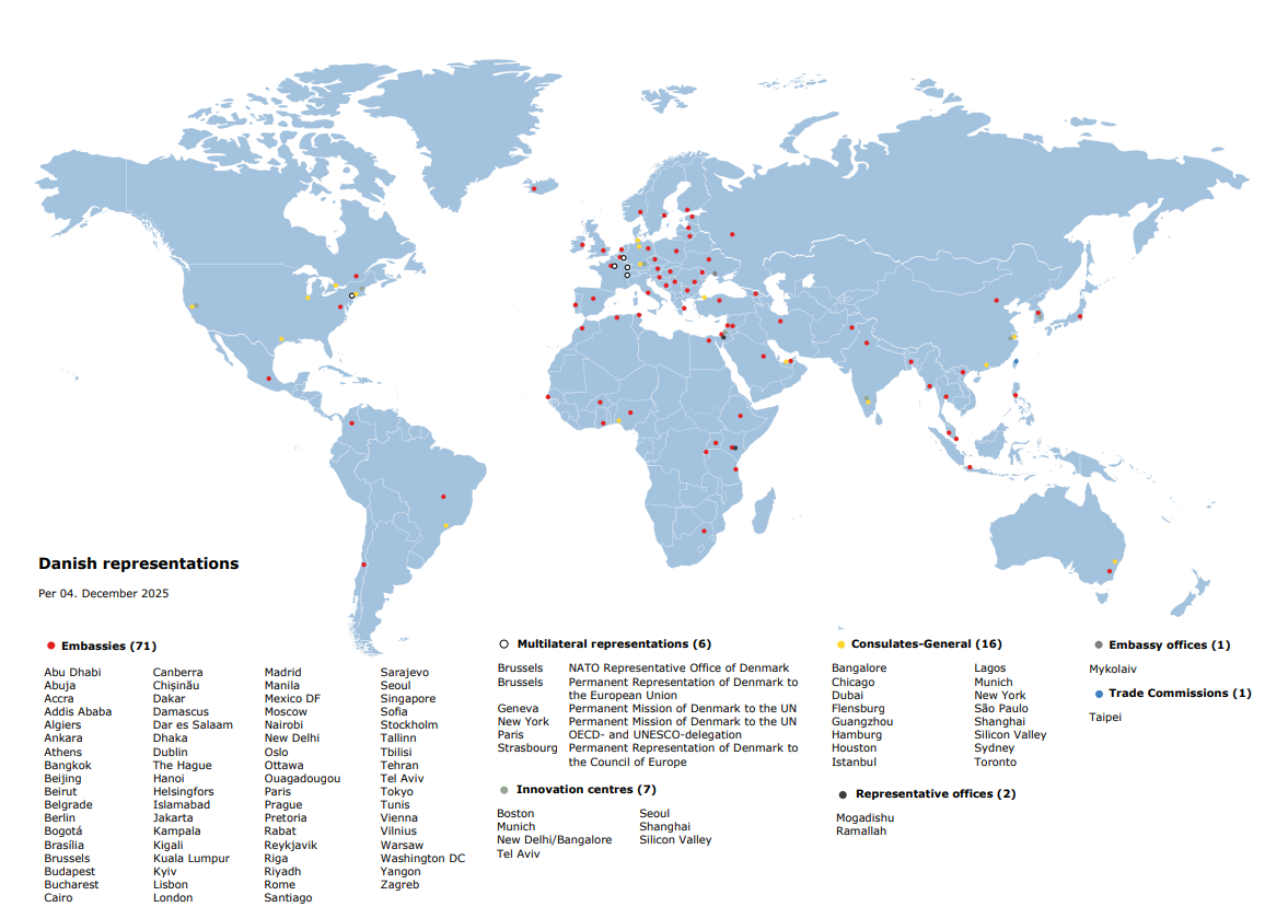 Below you will find contact information for Danish embassies and consulates in every country in the world.