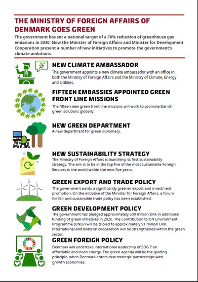 The Danish government’s climate ambitions and solutions have a broad outreach across the globe. Therefore, climate and sustainability will, to an even greater extent, be shaping large parts of the foreign, trade, and development policies.